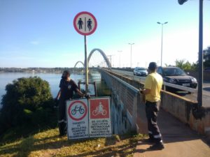 Nova sinalização permite ciclistas trafegarem pela Ponte JK pedalando